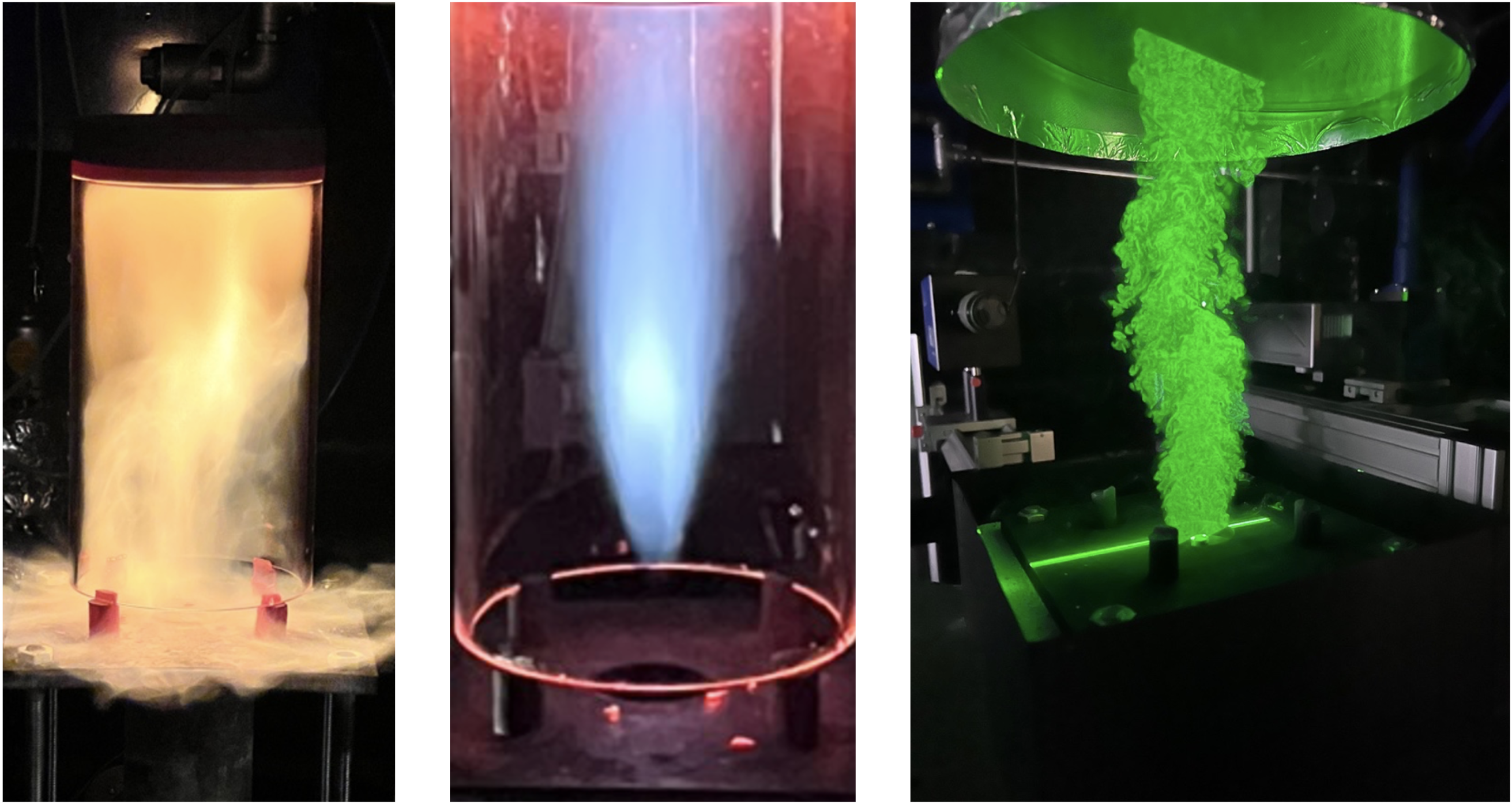 The transparent design of the stagnation-point reverse flow combustor provides optical access for advanced imaging diagnostics, while its modular supply system allows for flexible operation with conventional and alternative fuels.